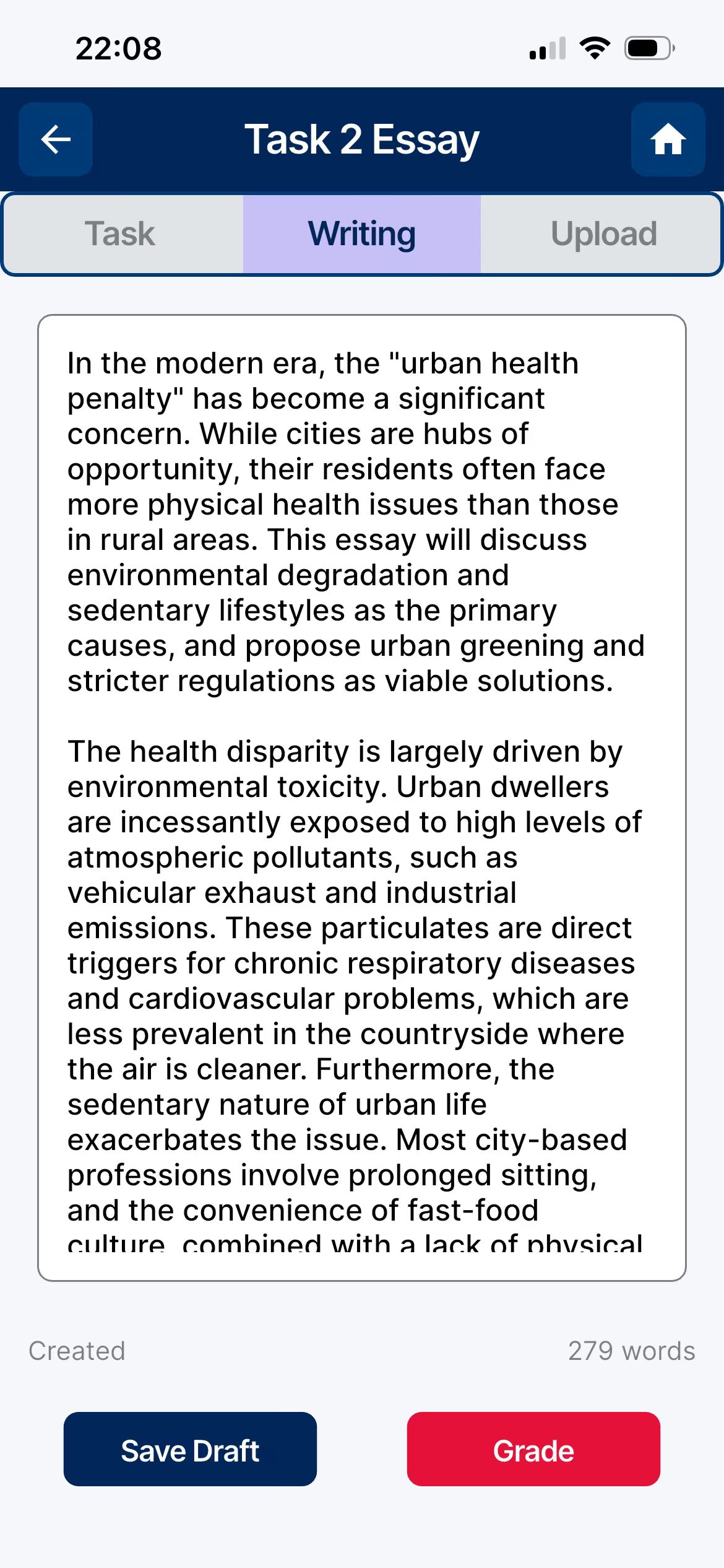 Prefer the real exam feeling with pen and paper? Snap a picture of your handwritten essay, and we will digitize and grade it instantly.