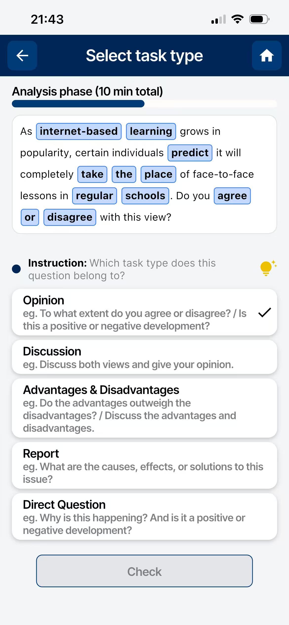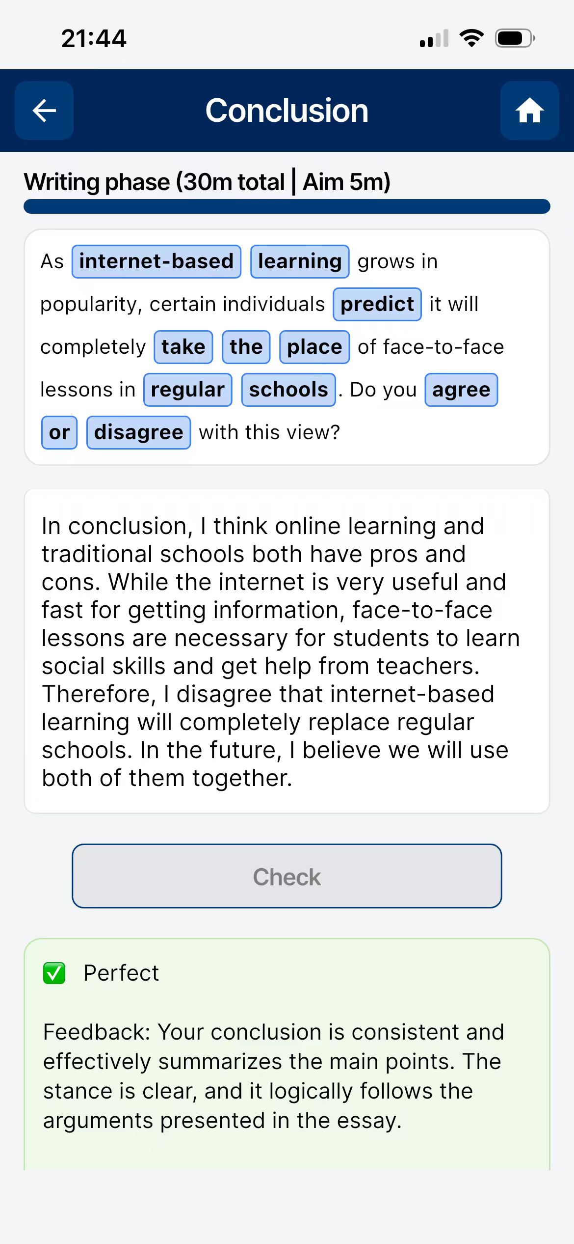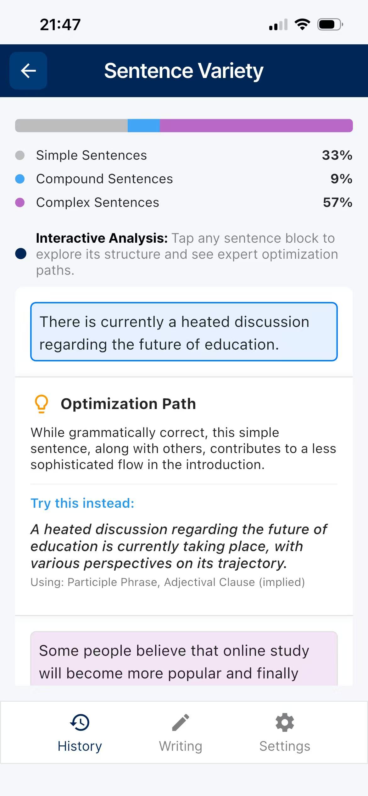 Stuck on ideas? Let our AI interactively guide you through generating viewpoints, structuring paragraphs, and selecting high-level vocabulary before you even write a single sentence.