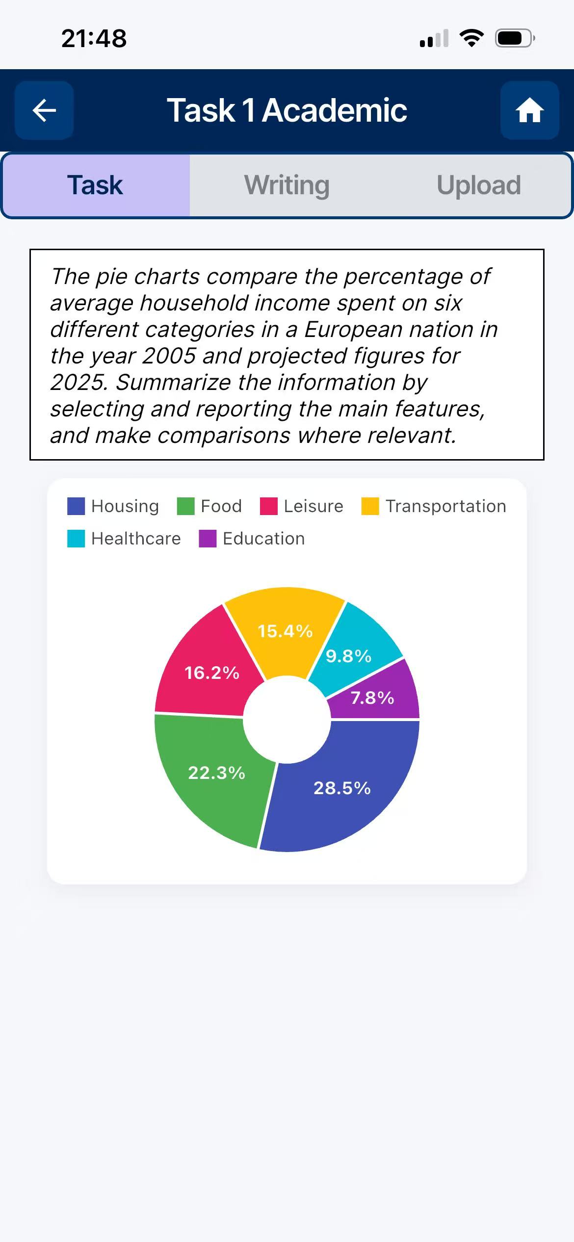 Have a specific question? Just upload a photo or screenshot of any IELTS prompt. Our AI instantly extracts the topic and charts.