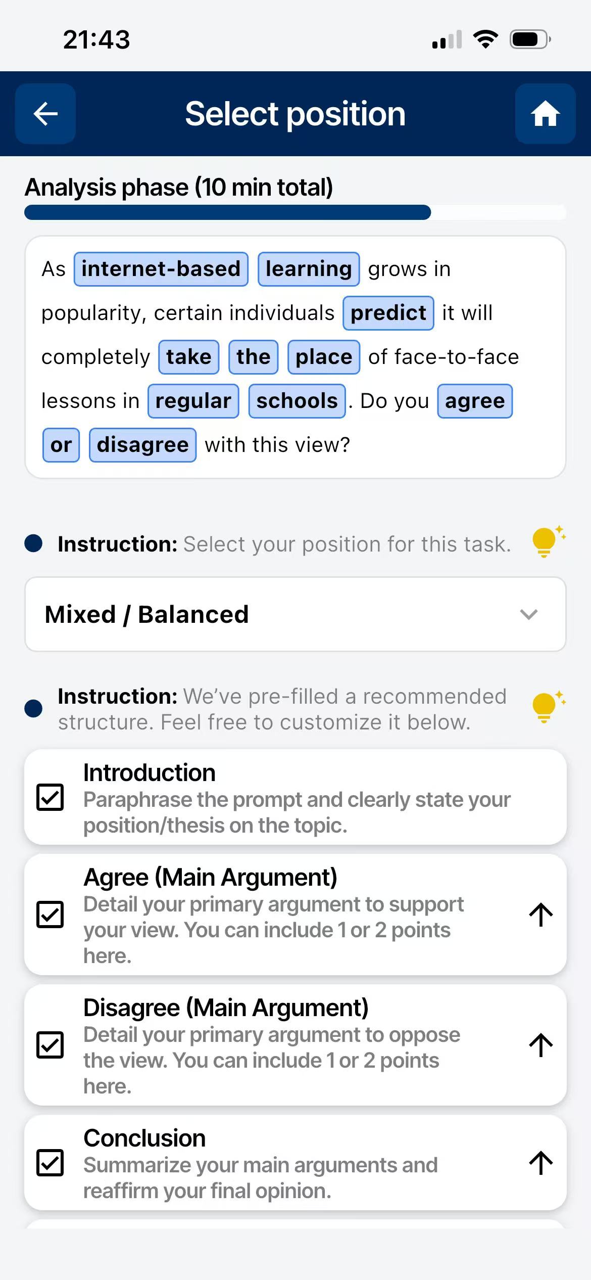 Build a solid essay structure with AI's interactive prompts.